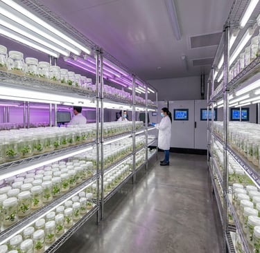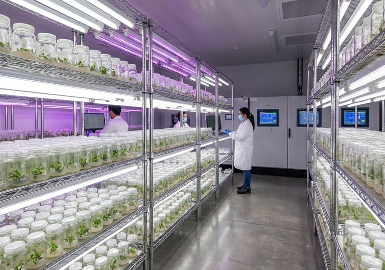 Advanced tissue culture boosting crop growth and health.
